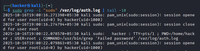 - Detected sudo privileges for suspicious_user